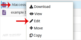 5. Right-click on the dot htaccess file and then Edit in the Context Menu.