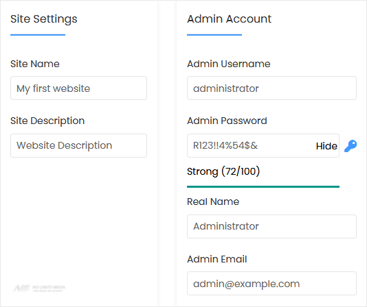- Admin Password: Use a strong password.