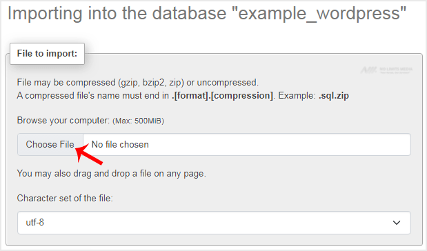 3. From the navigation tree in the left sidebar, select an appropriate database in which you want to import data using the SQL file.