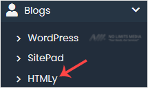 4. On the left side, locate the Blogs category. Click on it and then on the HTMLy link that appears.