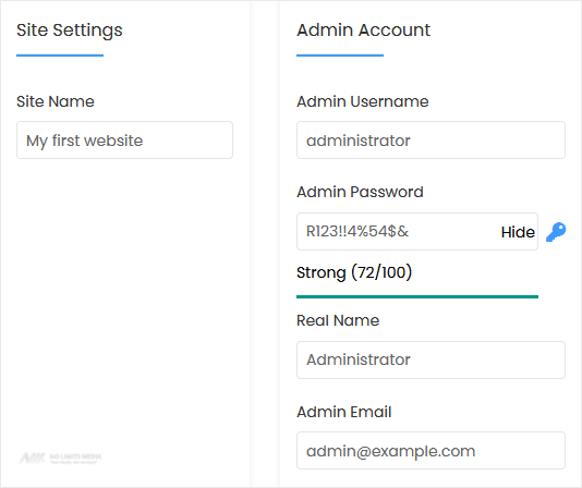 • Admin Password: Use a strong password.