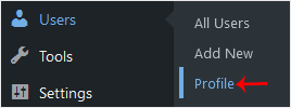 2. From the Dashboard menu, go to Users and click on Profile.